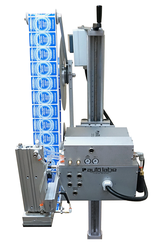 Auto Labe’s Automatic Tamp-Down Label Applicator applies a pressure-sensitive label utilizing a positive tamp action to ensure complete label adhesion on the product container or package. Tamp heads of different materials from hard to spongy allow for product variation or surface differences. The Tamp-Down Applicator may be used in any direction and a variety of tamp heads are available for multiple products.